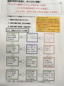 これに先経ち各教科ごとに合格に必要な得点を割付、 各教科の問題ごとに割り付けていきました。 そし達成すれば、必ず合格するという心構えを作り上げたのです。 過去問に取り組むときは本番時間で区切りました。 もしキミが現在E判定で一番行きたい大学を諦めかけているならば、合格への新たな道を切り開きませんか?